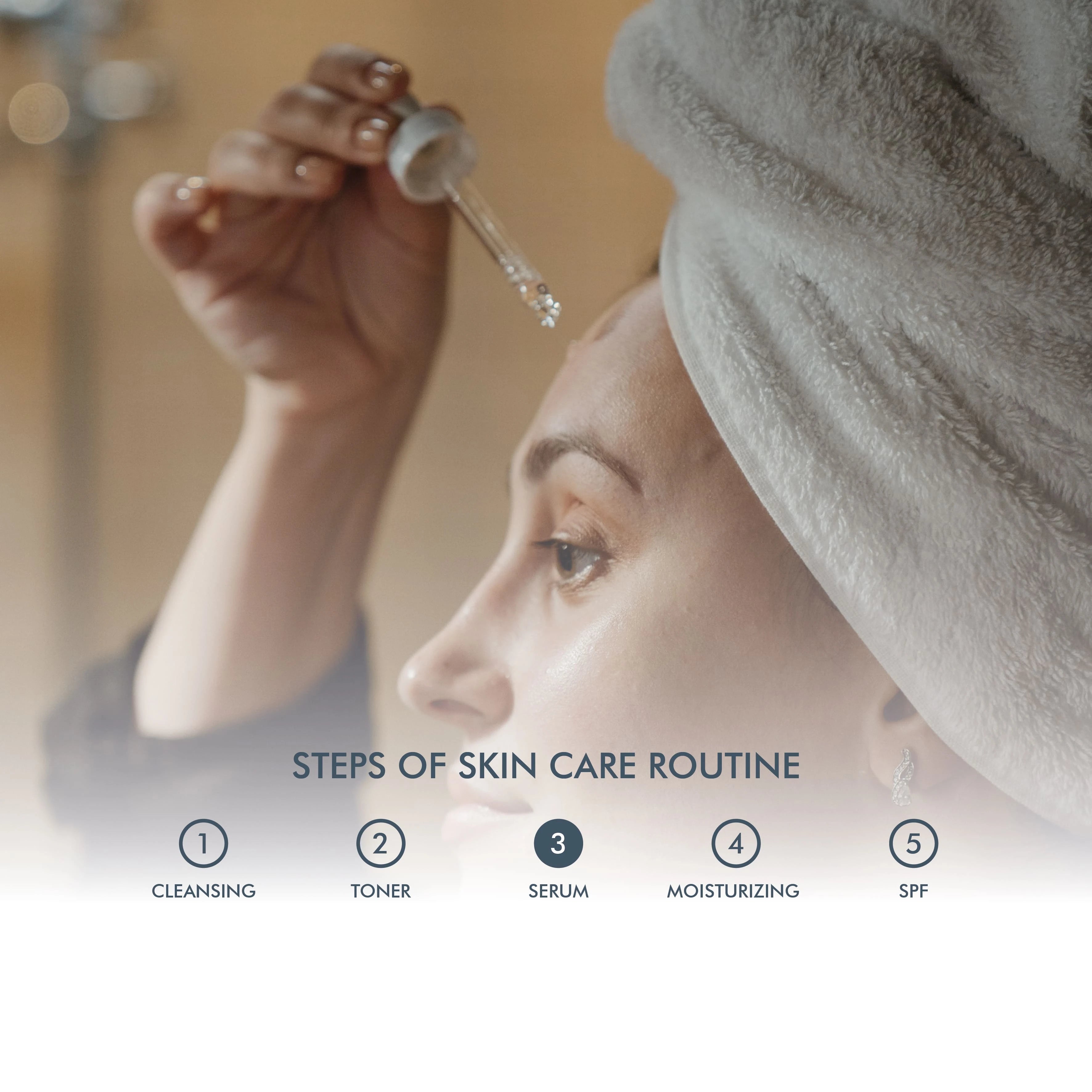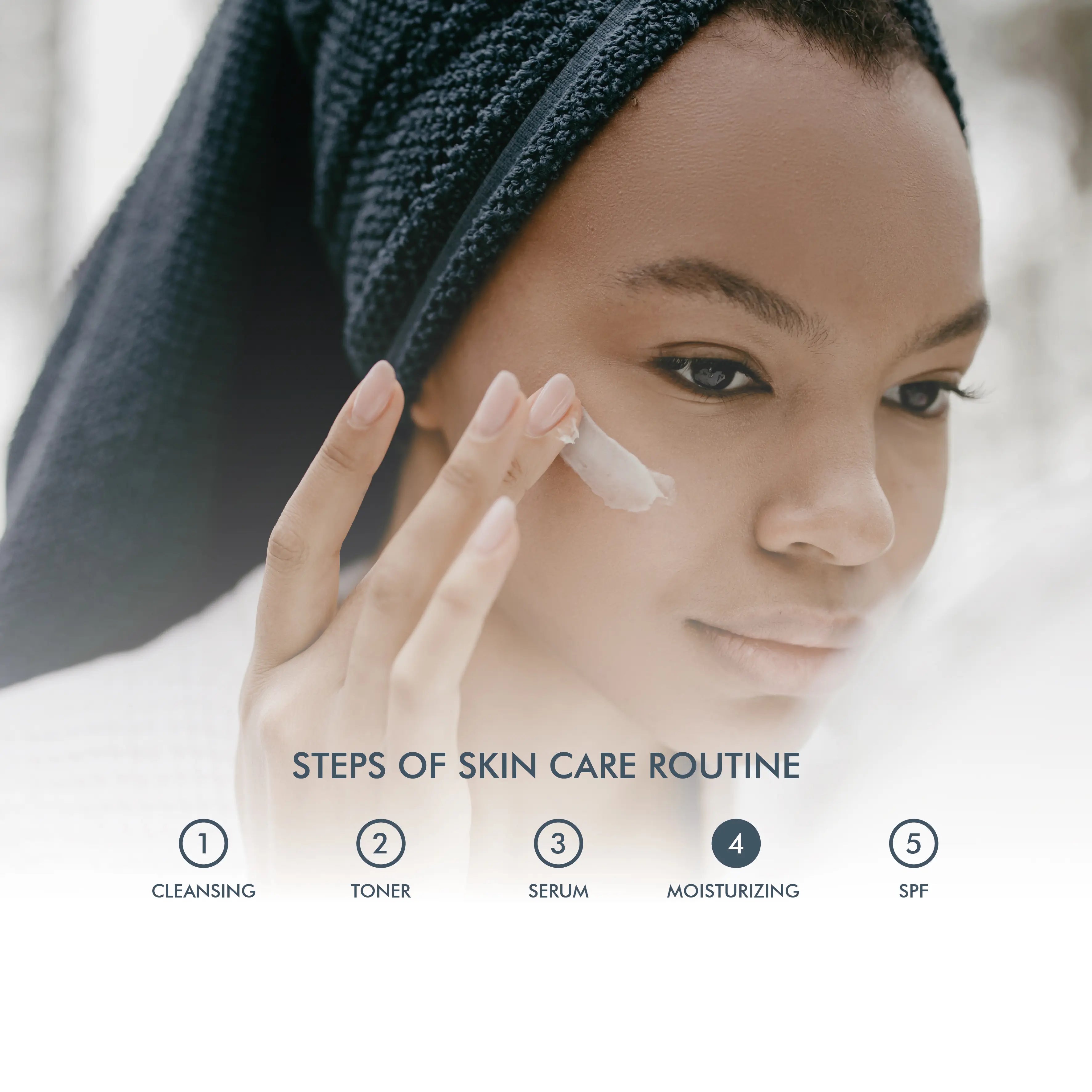 The moisturizing stage is one of the most important steps for your skin. You can use Intensive Hydration Serum and Hydration Booster Daily Moisturizing Cream to help your skin look more vibrant, fuller and smoother.